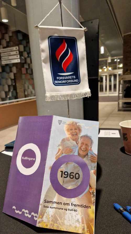 Barbro og Kjartan stile med informasjon om FSF Rogaland på Sola kommune sitt kullingtreff onsdag 05 nov. Kullingtreffet var en samling for innbyggere som bor i Sola kommune og er født i 1960. Dette er en årlig hendelse for de som fyller 65 år.