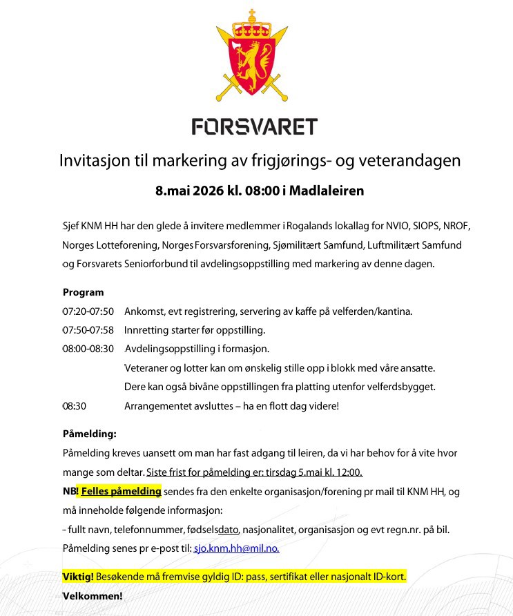 «God dag, forsvars- og veteranorganisasjoner i Rogaland!