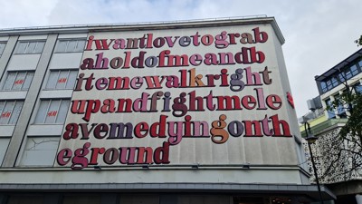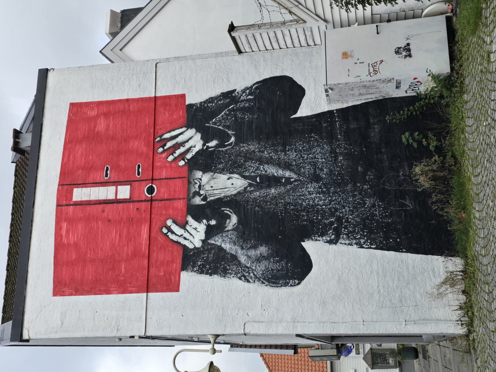 Foto: Barbro H. Frøisland – Gjengen forsøker å tolke hva det står på veggen (se bildet under)