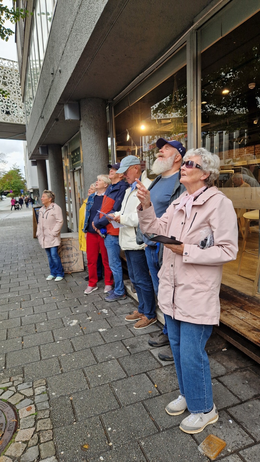 En fin septemberdag startet vi opp høsten med å vandre i Stavanger med foreningens egen Bjørn H. Jæger som guide. Godt pålest fortalte han om smått og stort – gamle og nye farger og former ble sett på. Interessante opplysninger fikk vi til livs og plutselig kjente vi Stavanger litt bedre!