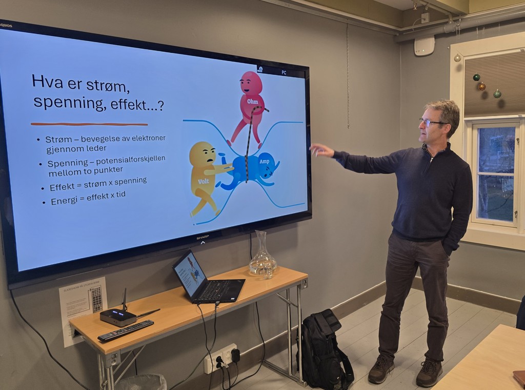 Foto over: Marie Gjelsvik - Terje Nevland leder Drift Lnett har en pedagogisk og morsom innledning til strømbegrepene