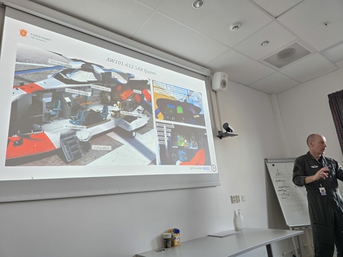 Avdelingssjef Finn-Jørgen Torshaug Wang på 330 skvadronen på Sola gav oss denne dagen en veldig pedagogisk og grundig oppdatering på hvordan det har gått etter innføringen av de nye redningshelikoptrene SAR Queen. Kortversjonen er at de er godt fornøyd med de nye maskinene og hvilke kapasiteter de representerer. Han gav oss også en historisk tidslinje på hvordan skvadronen har utviklet seg og hvilke kompetansehevende grep som har vært gjort. Neste milepæl for skvadronen er å opprette en ny base på Tromsø innen 2030.